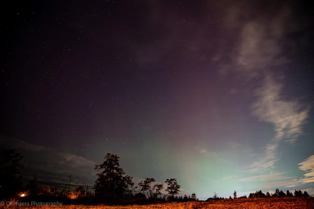 We were about to go to bed when Bob noticed someone on Facebook in our area posting about seeing the Aurora Borealis, so we got dressed and went out. It was very faint with the naked eye, but the camera picked it up with a long exposure. These were all taken at f/2.8. The camera may have picked ups more with my f/1.4 prime lens, but we left in a hurry without it - 7 October 2024