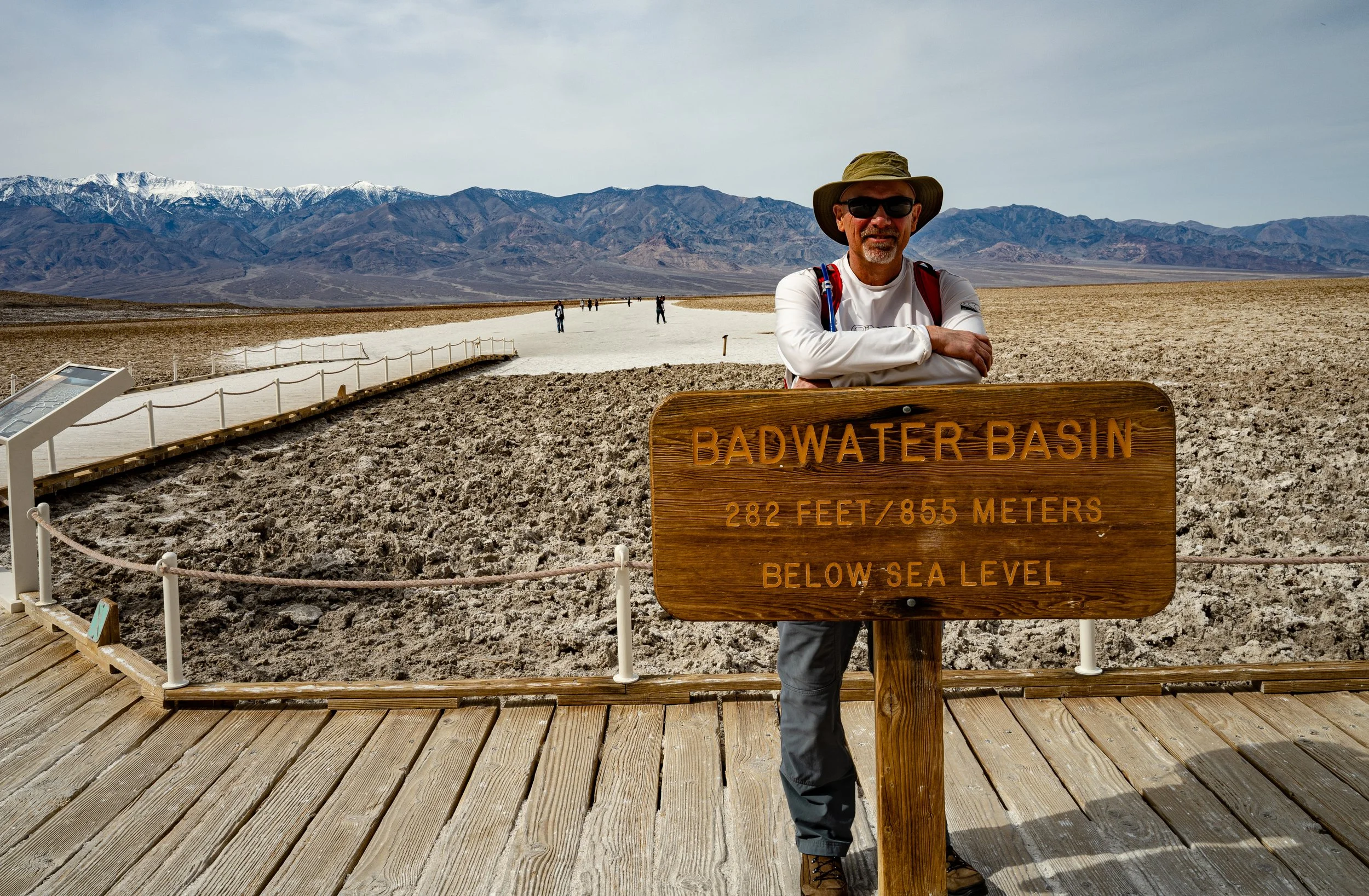 Badwater Basin is number one on the National Park Service’s Must-See Location list for the park and is one of three locations on their “do-not-miss” list. It did not disappoint. We walked out about a mile onto the flats. I attached my 24mm wide-angle lens in the car and didn't change it while we were out there to avoid getting salt inside the camera. All the photos were taken at either f/14 or f/16 and I left the camera on auto ISO (100 in most of these photos) and auto shutter. It was a fairly hazy and mostly cloudy day, and I should have had my UV Haze filter on, but I had my polarizing filter on instead. Too many things to remember. The photos were all Raw photos post-processed in Adobe Lightroom and then converted to JPEG.